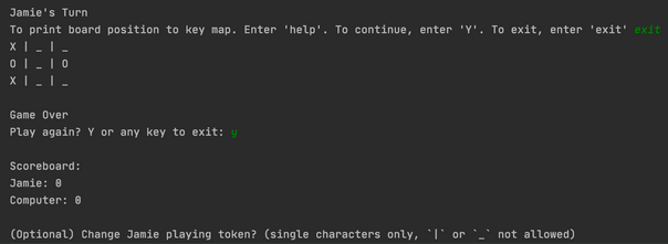 Simple terminal game of tic-tac-toe with tests. Board can be expanded out to 10x10 with a min. board of 3x3.